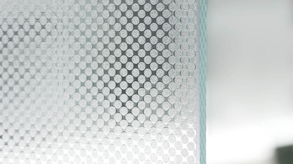 エンボスグラデーションはスリガラス調の風合いを生かしたドットタイプのグラデーションシートです。エンボス独特の凹凸の立体感と透明感が、印刷とは異なる自然で柔らかな印象の目隠しを実現します。