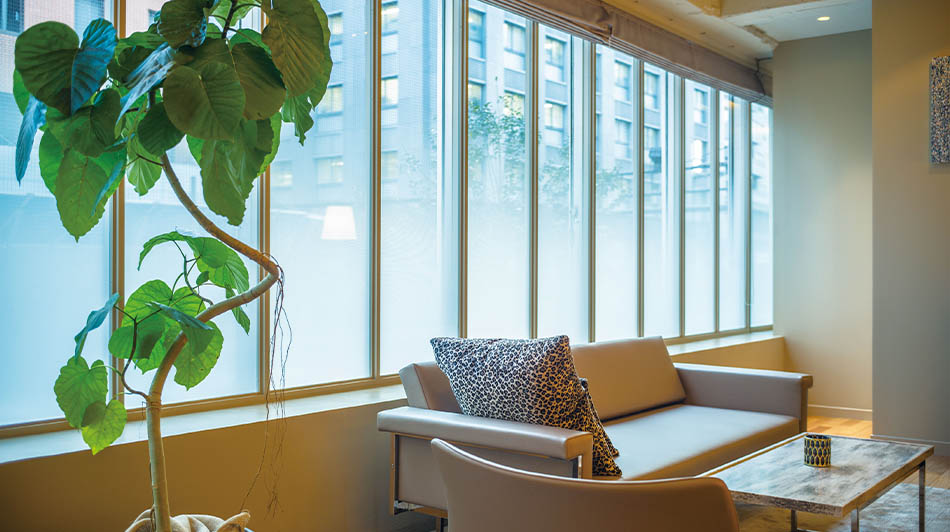 ガラスの透過性を活かしながら、開放感のある目隠しがおこなえます。